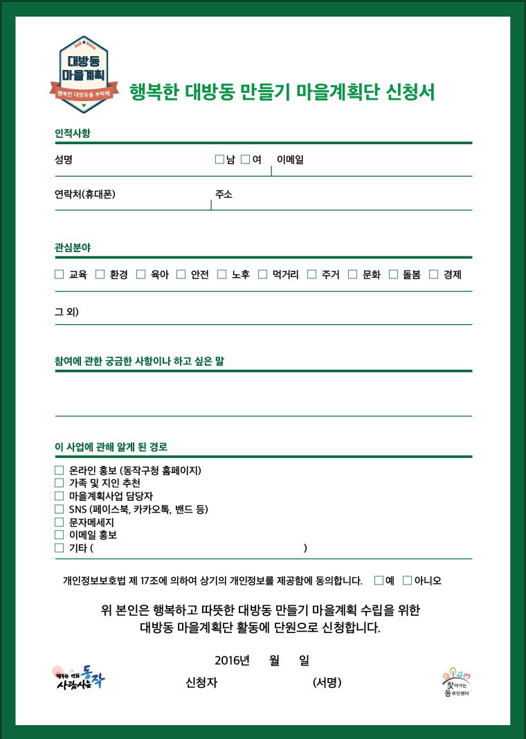 (대방동 주민센터 및 주요 기관에 신청서 비치)