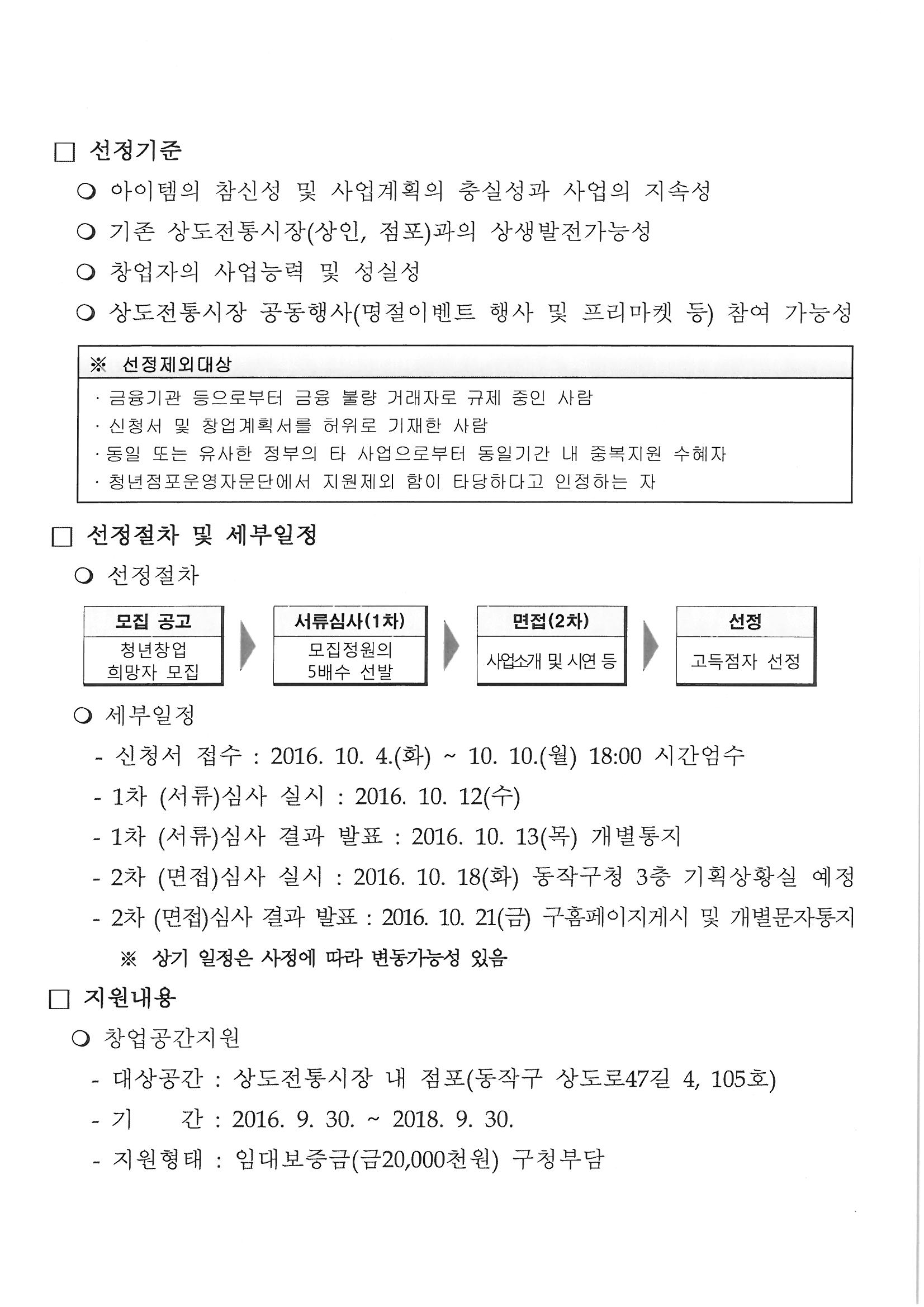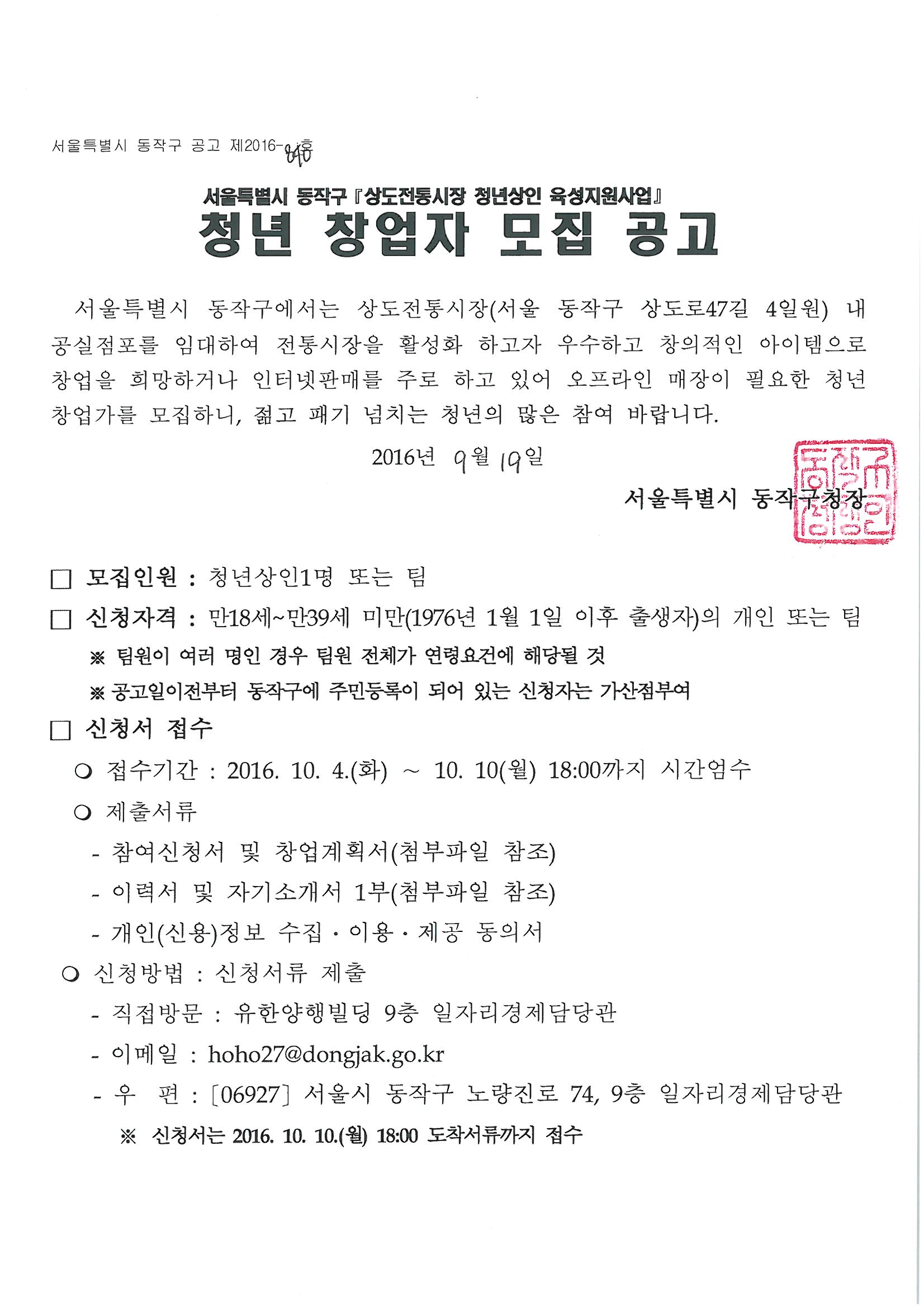상도전통시장 청년상인 창업대상자 모집 공고