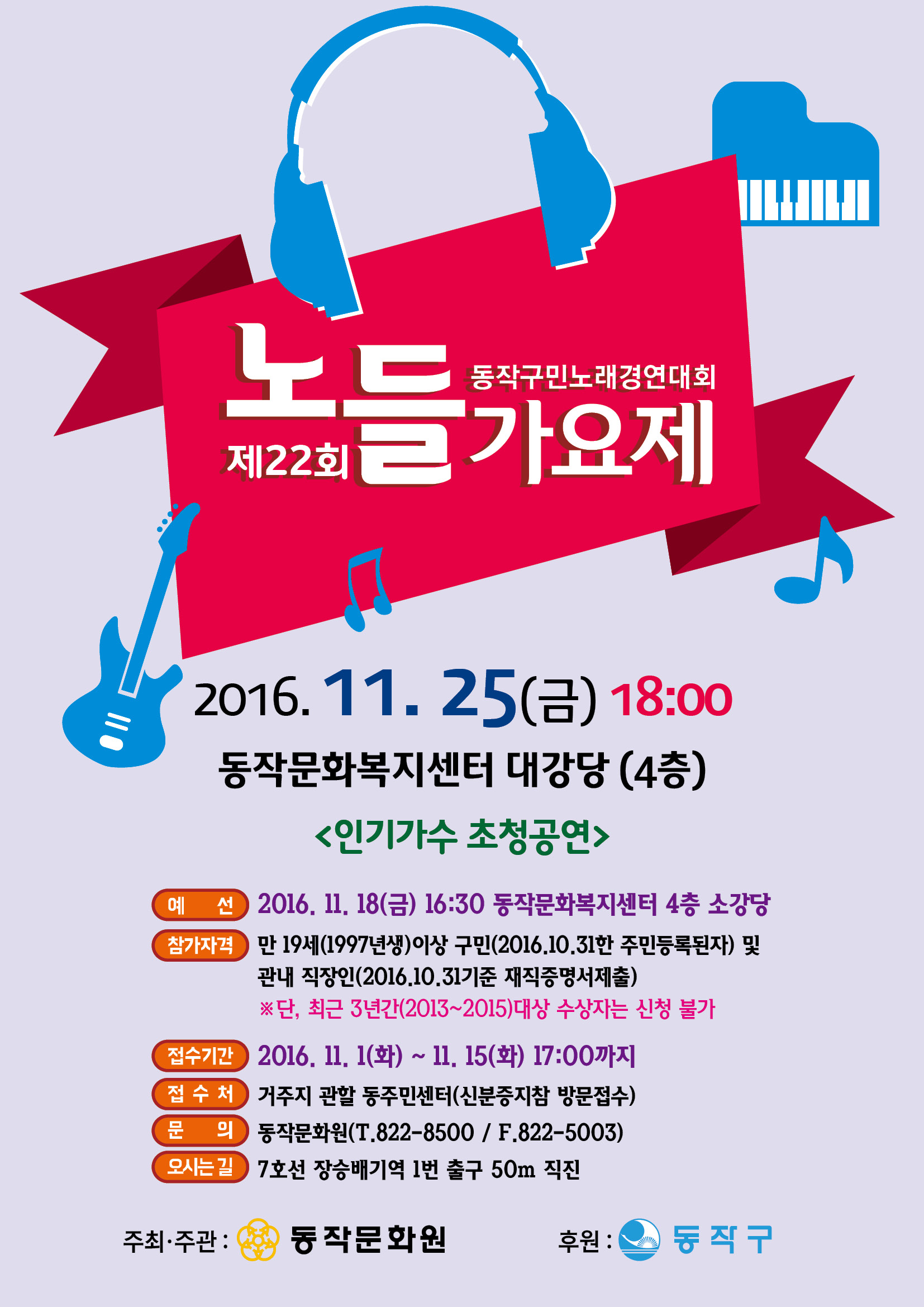 예선 : 2016. 11. 18(금) 16:30 동작문화복지센터 4층 소강당