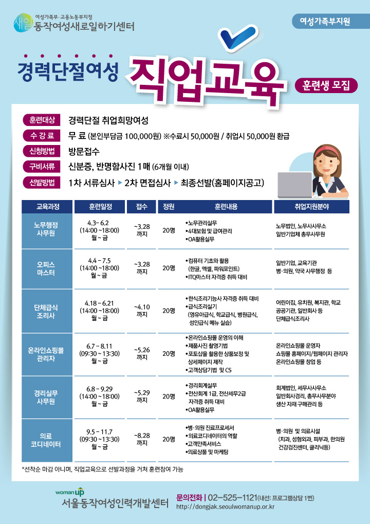 동작여성인력개발센터 [경력단절여성 직업교육 훈련생 모집]