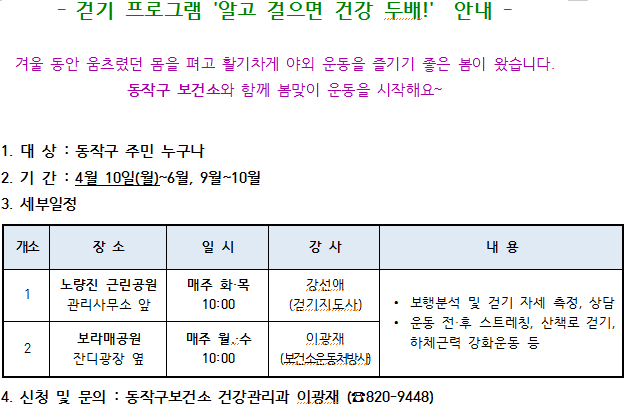 걷기 프로그램 '알고 걸으면 건강 두배!' 일정 안내