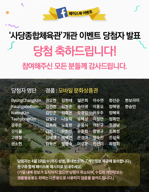 【사당종합체육관 개관 이벤트 - 당첨자 발표】