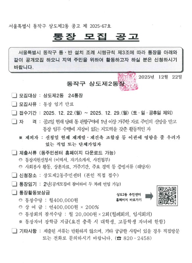 상도2동 통장 모집 공고(24통)