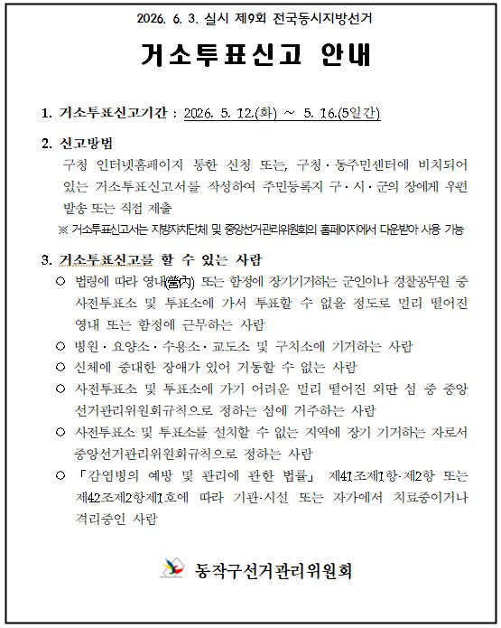 2026.6.3.실시 제9회 전국동시지방선거 거소투표신고 안내