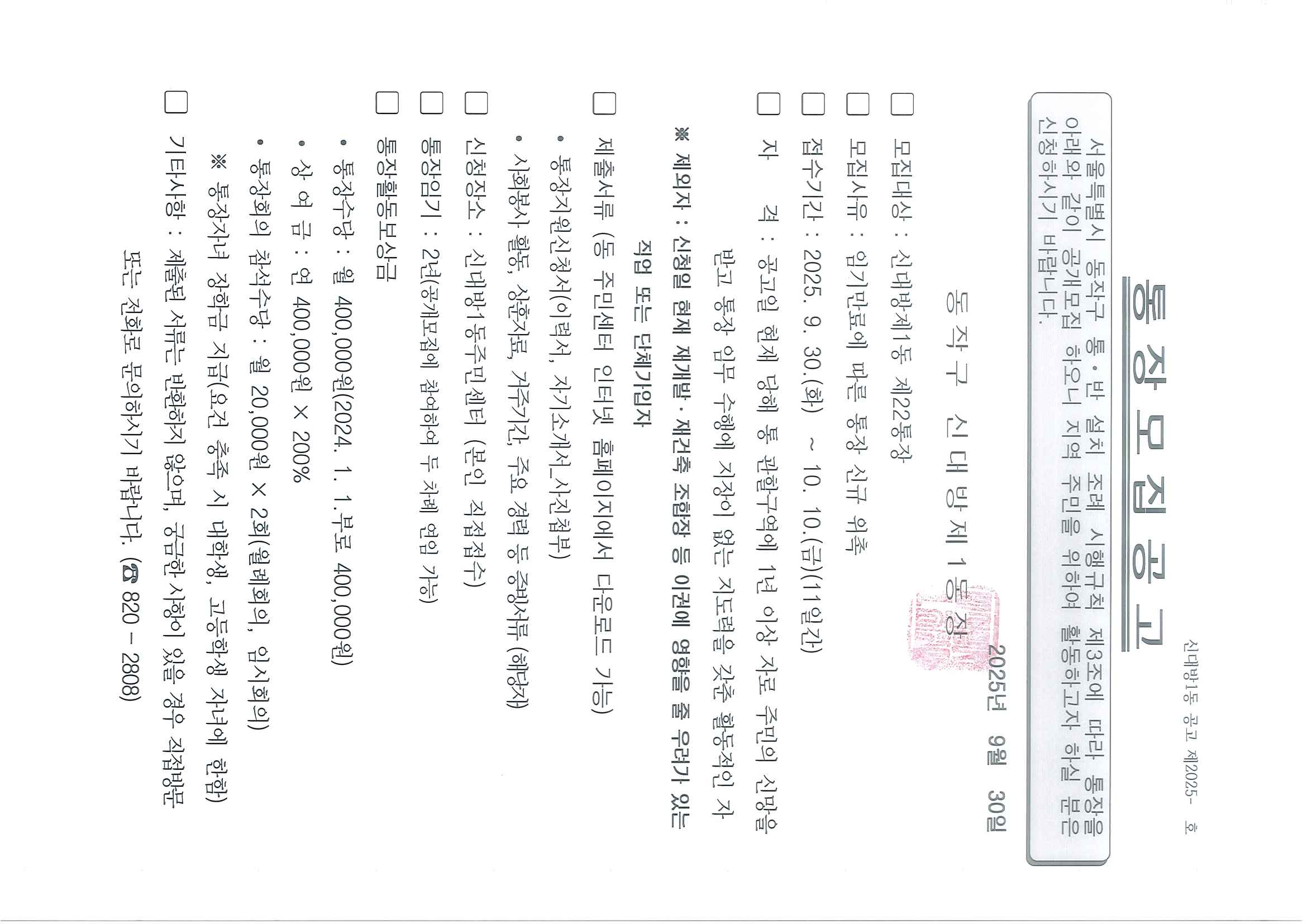 통장 공개모집 공고(22통)