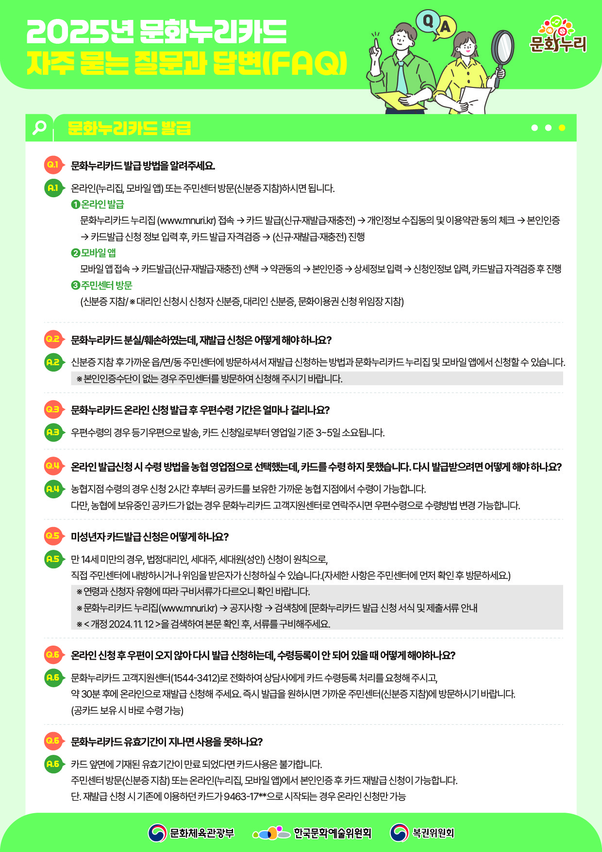 2025년 문화누리카드 자주묻는질문(FAQ)