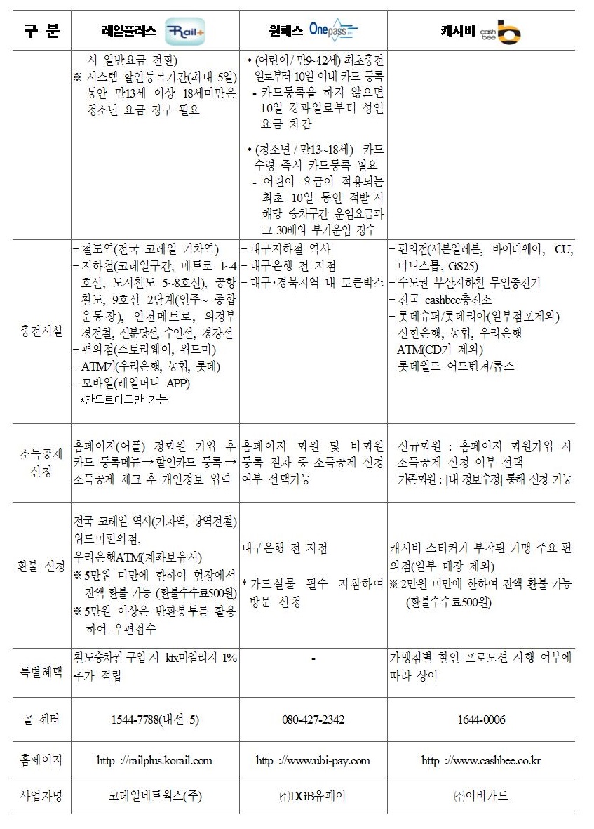 ◇ 교통카드 이용 전 소득공제 신청하세요. 소급하여 공제가 불가합니다.