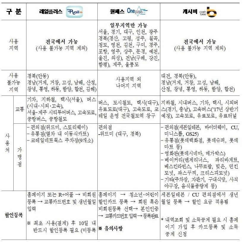 ◇ 교통카드별 사용 가능지역을 확인하고 신청하세요