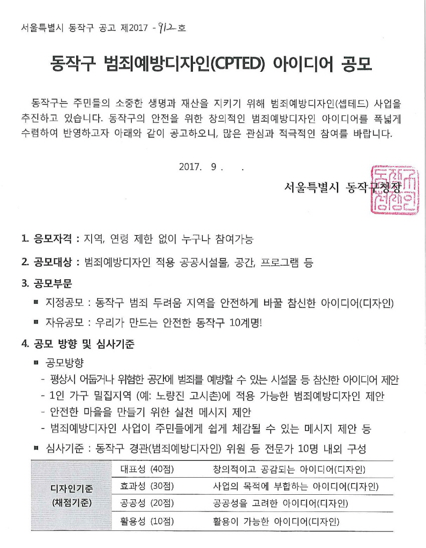 동작구 범죄예방디자인(CPTED) 공모전 안내