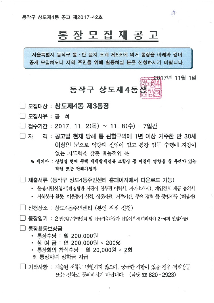통장모집 재공고(제3통장)
