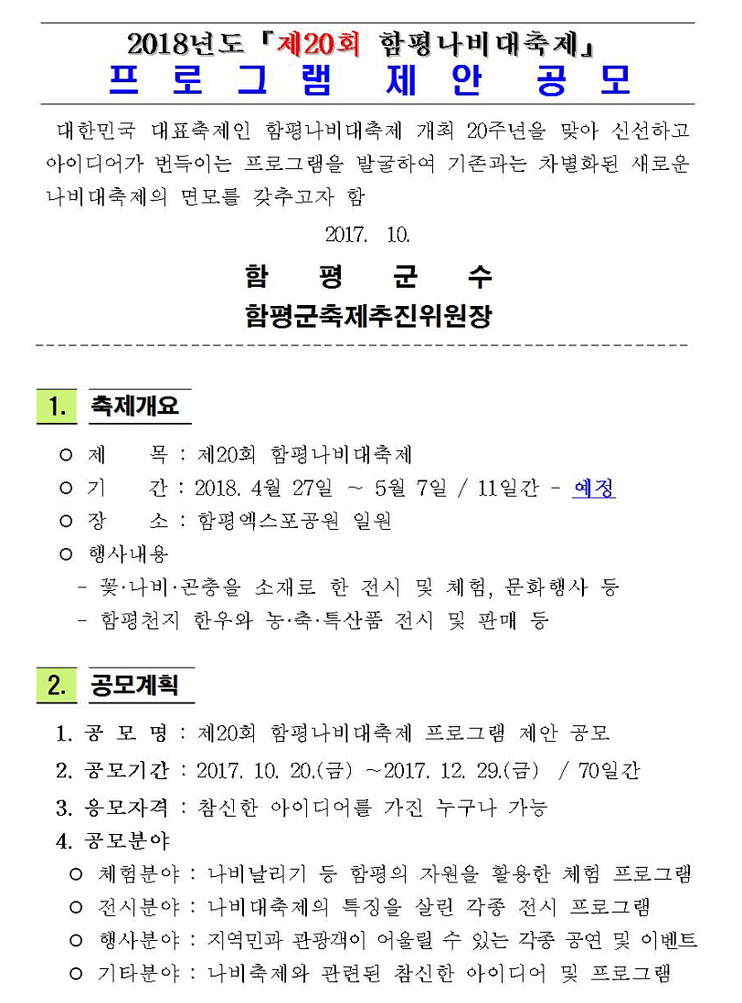 「2018년도 제20회 함평나비대축제」프로그램 공모 제안서.hwp