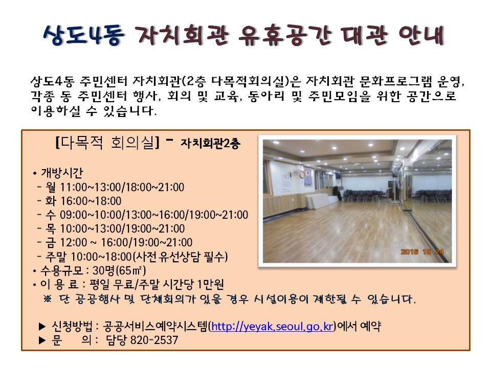 상도4동 자치회관 유휴공간 대관 안내