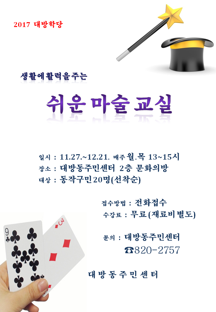 누구나 쉽게 익힐 수 있는 "쉬운마술" 교실을 만나보세요 ^^