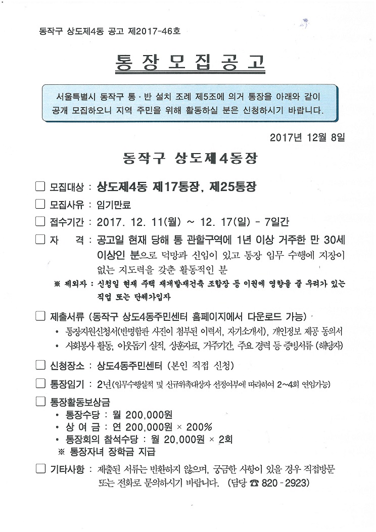 통장모집 공고(제17통장, 제25통장)