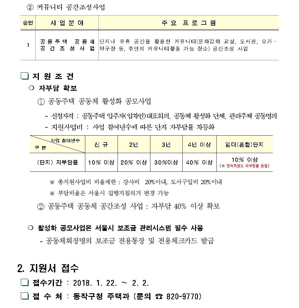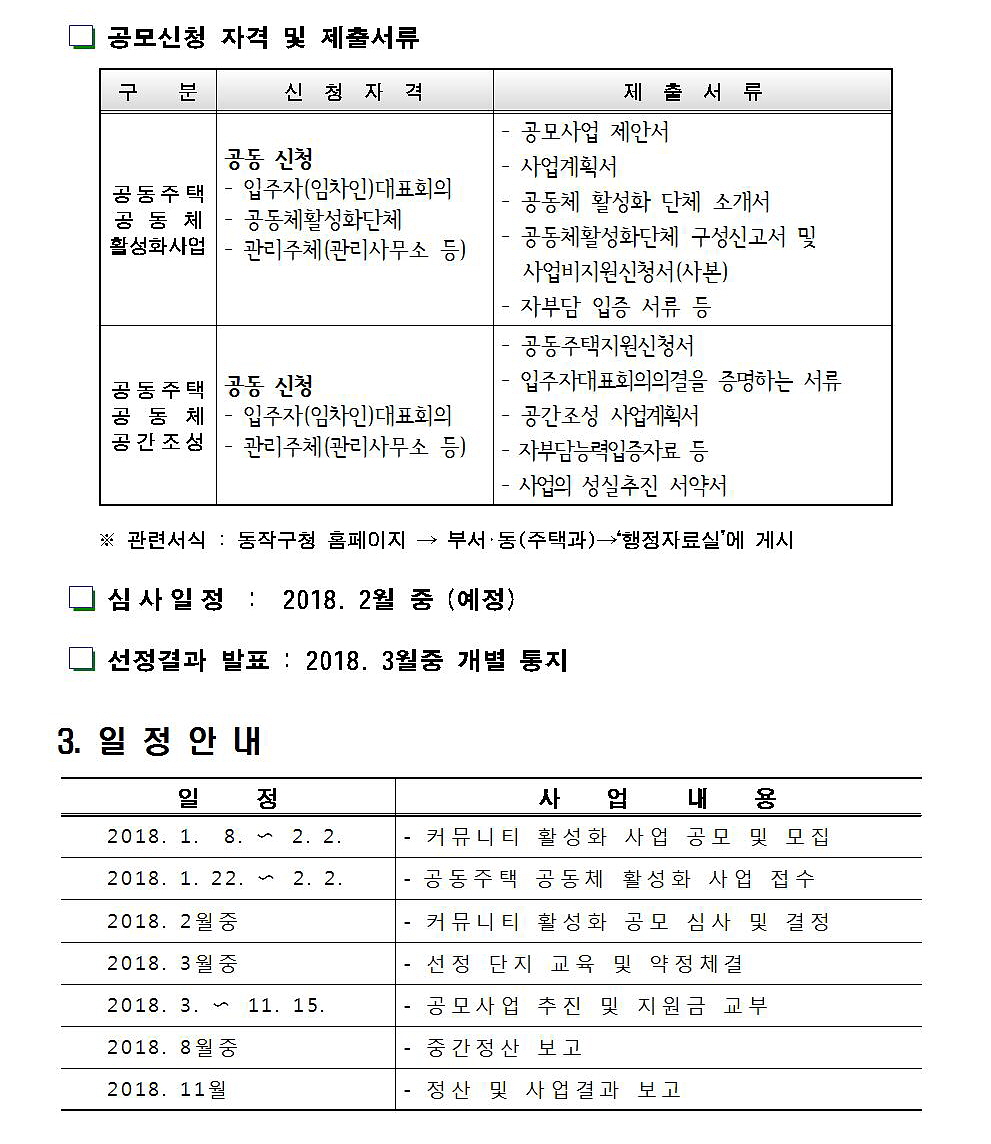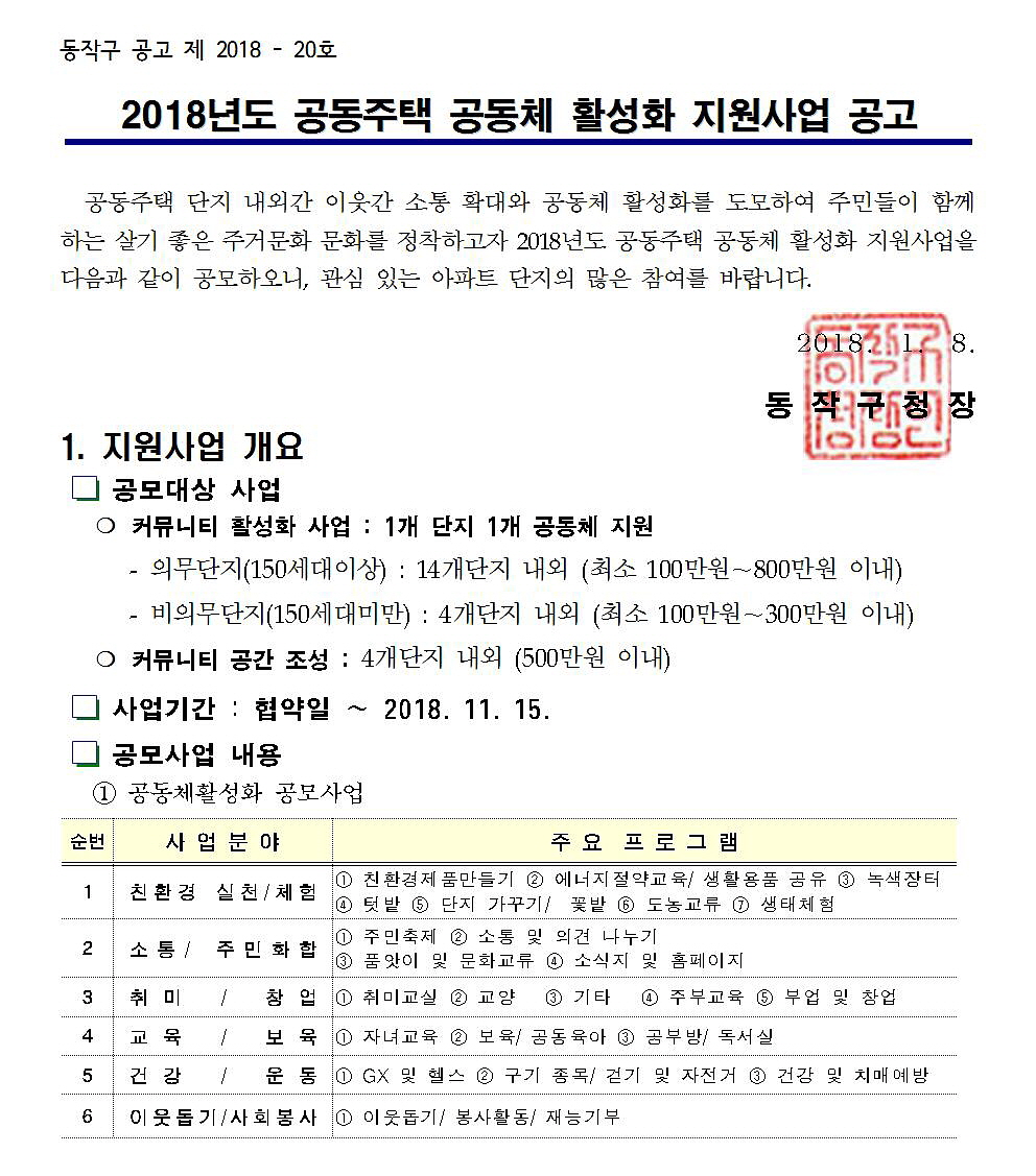 2018년도 공동주택 공동체 활성화 지원사업 공고