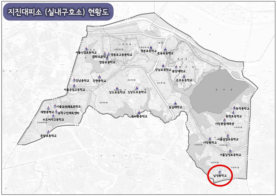 지진 옥외대피소 및 실내구호소 안내