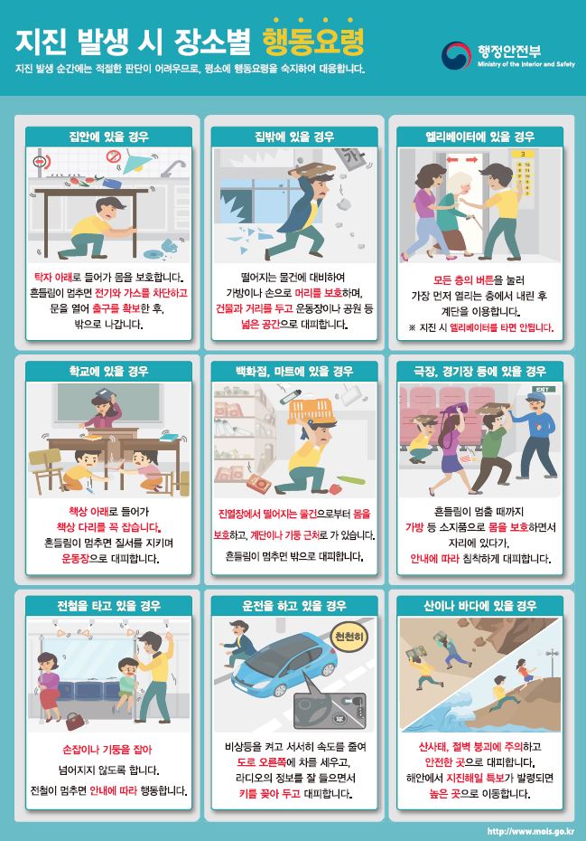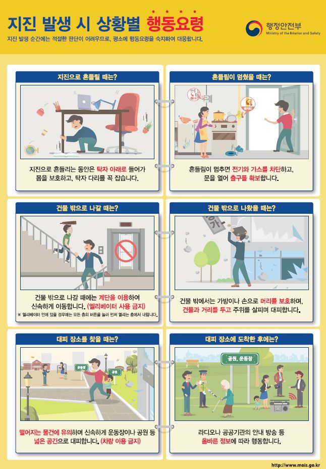 위급한 상황에서는 적절한 판단이 어려우므로 평소에 행동요령을 숙지하시어 도움이 되시길 바랍니다*^^*