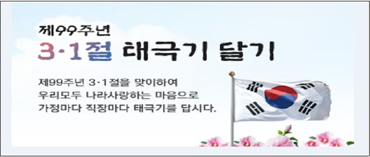 ☆ 가정에서는 3.1.(목) 07:00부터 18:00까지 태극기를 답니다.