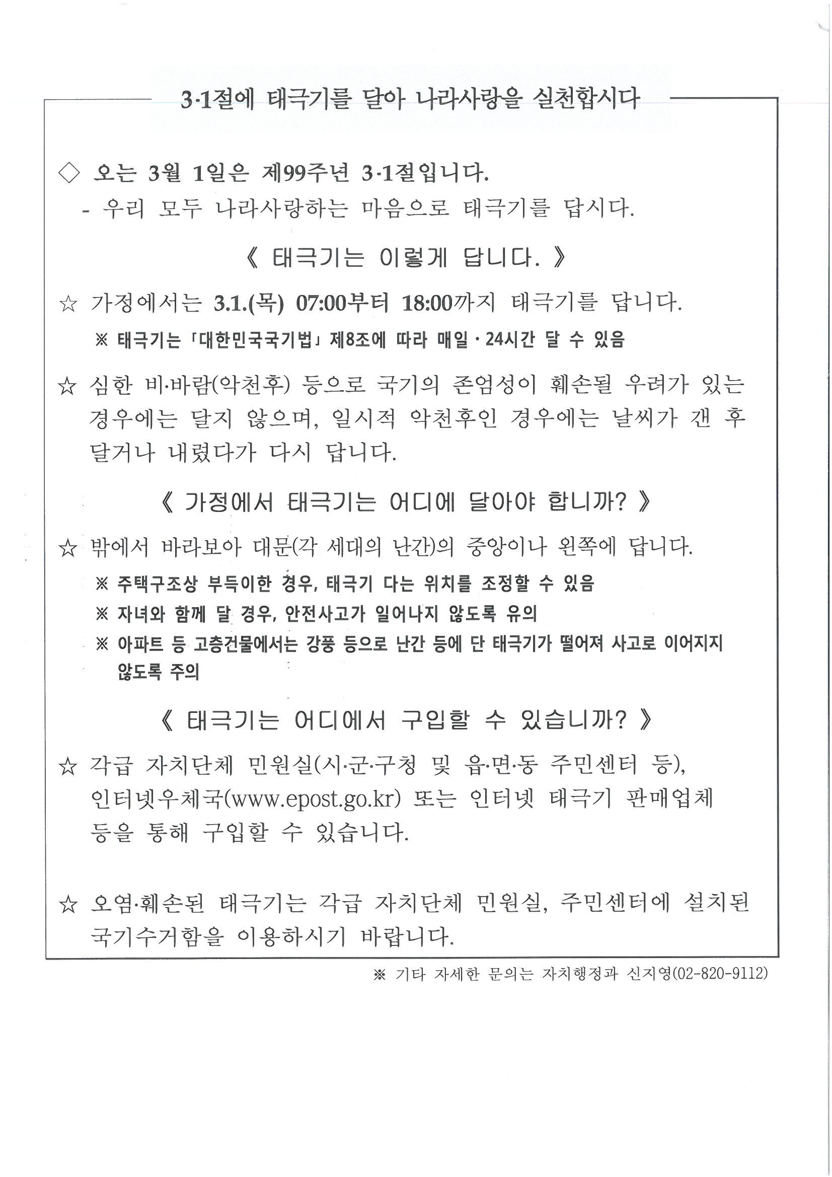 3·1절에 태극기를 달아 나라사랑을 실천합시다