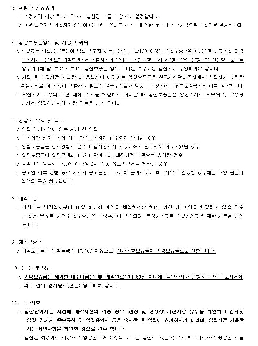 남양주시 공유재산 매각 일반경쟁 입찰 재공고