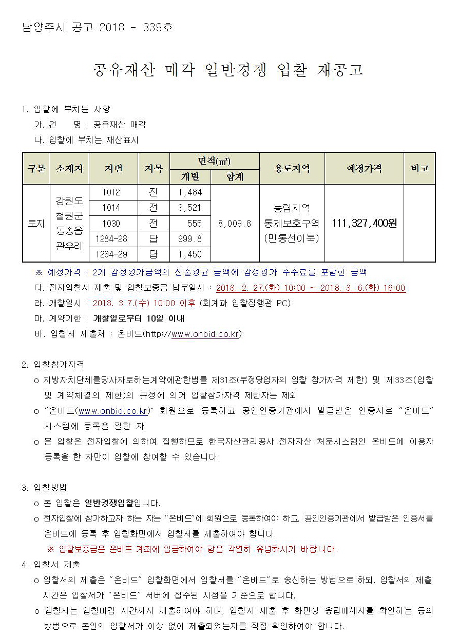 [남양주시공고2018-339호]공유재산 매각 일반경쟁 입찰 재공고.hwp