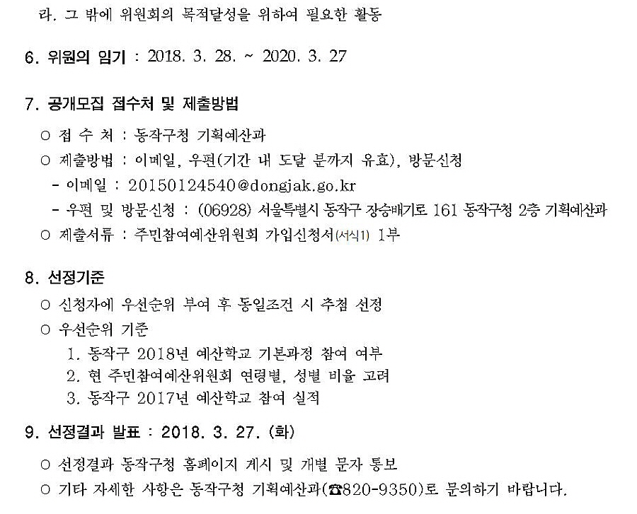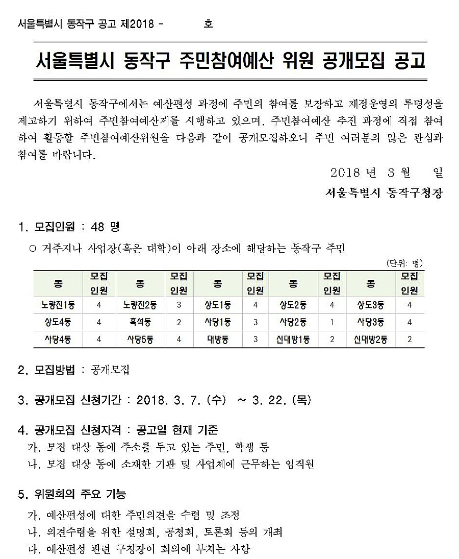 서울특별시 동작구 주민참여예산 위원 공개모집 공고