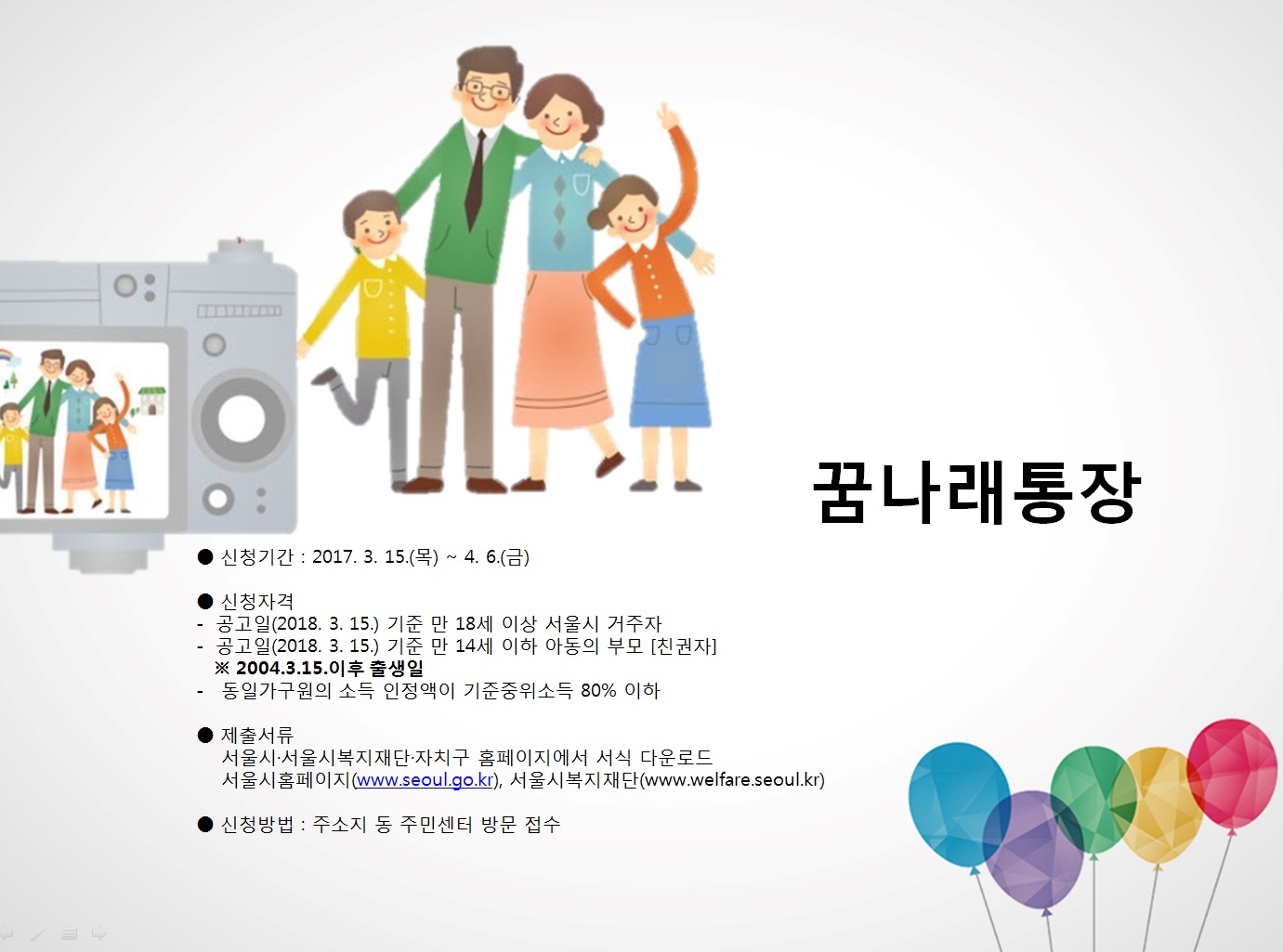 2018년 꿈나래통장 신규 참가자 모집 안내