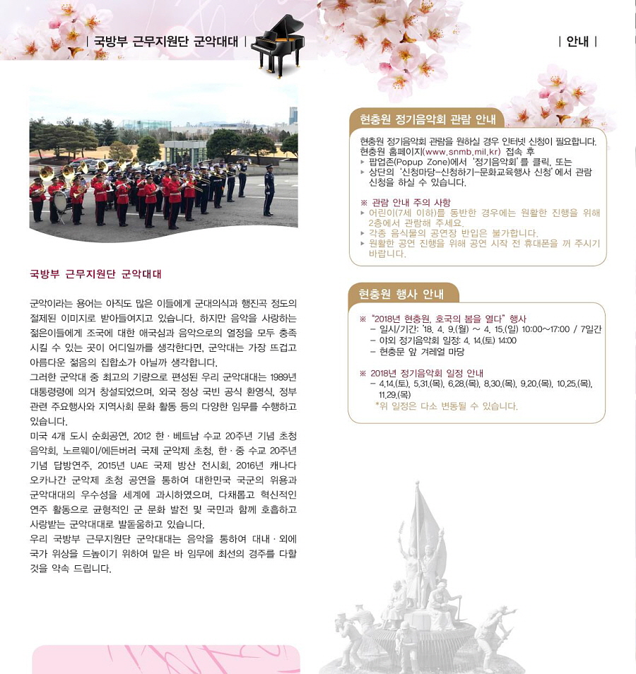 국립서울현충원 4월 정기음악회 개최 안내