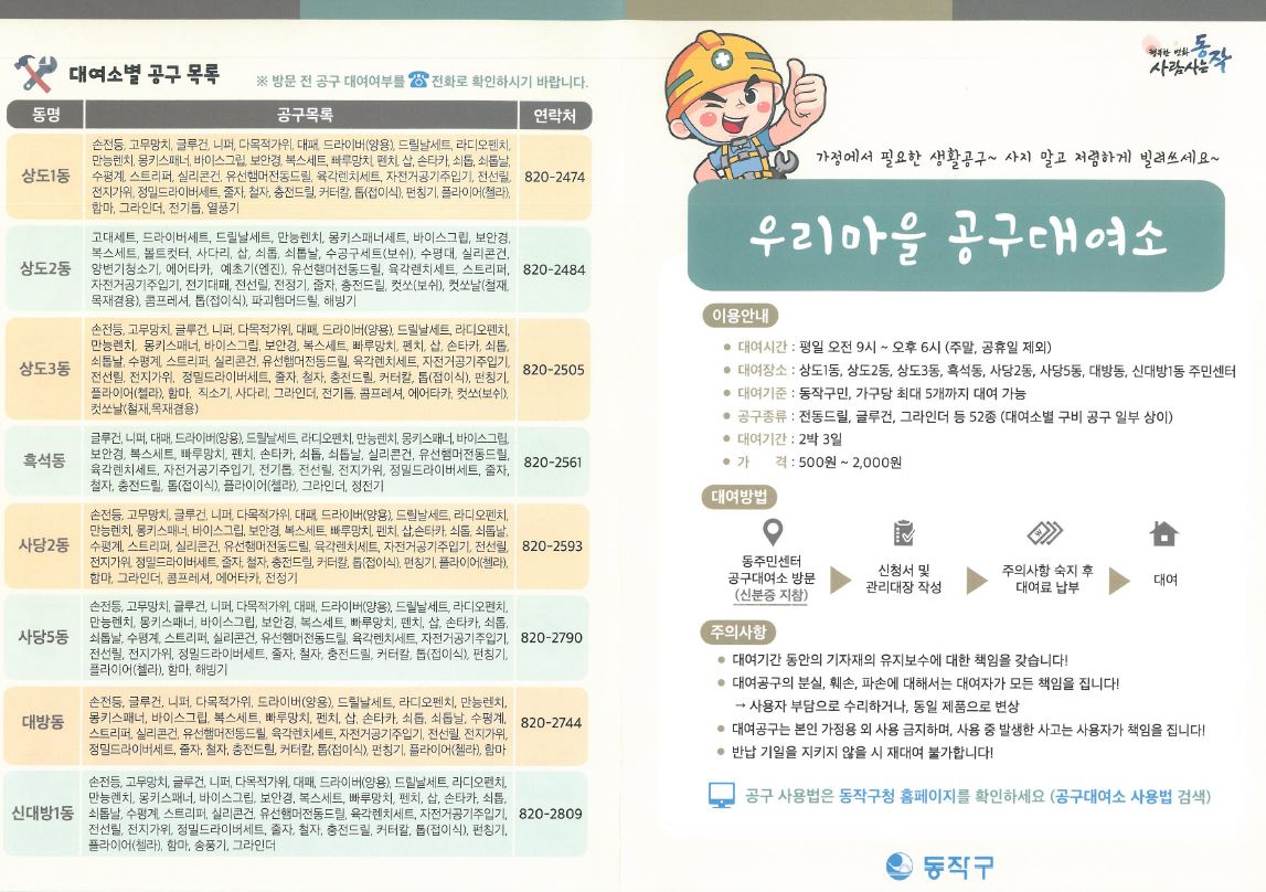 상도3동에서는 <우리마을 공구대여소>를 운영하고 있습니다.