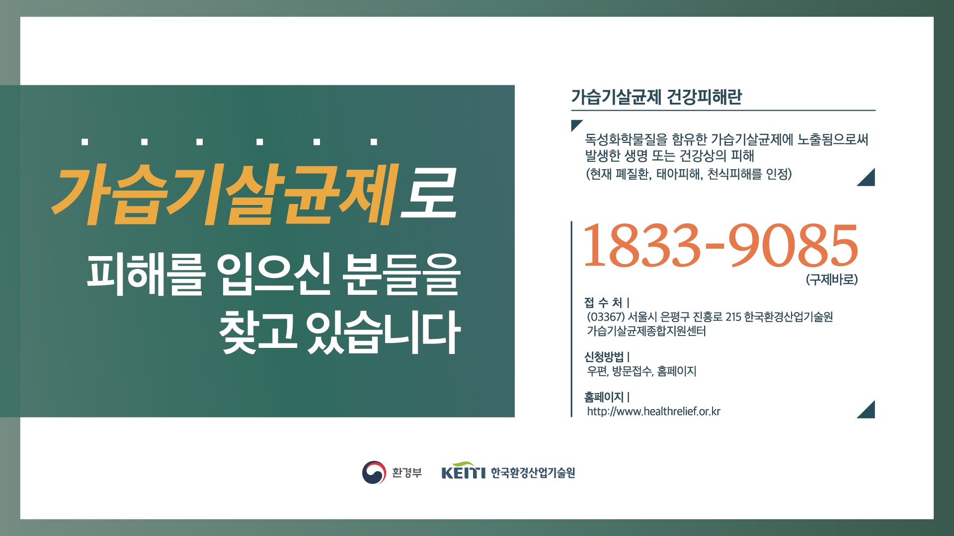 이와 관련하여 가습기 살균제 피해자를 추가 발굴하오니 대상자분들께서는 숙지바랍니다.