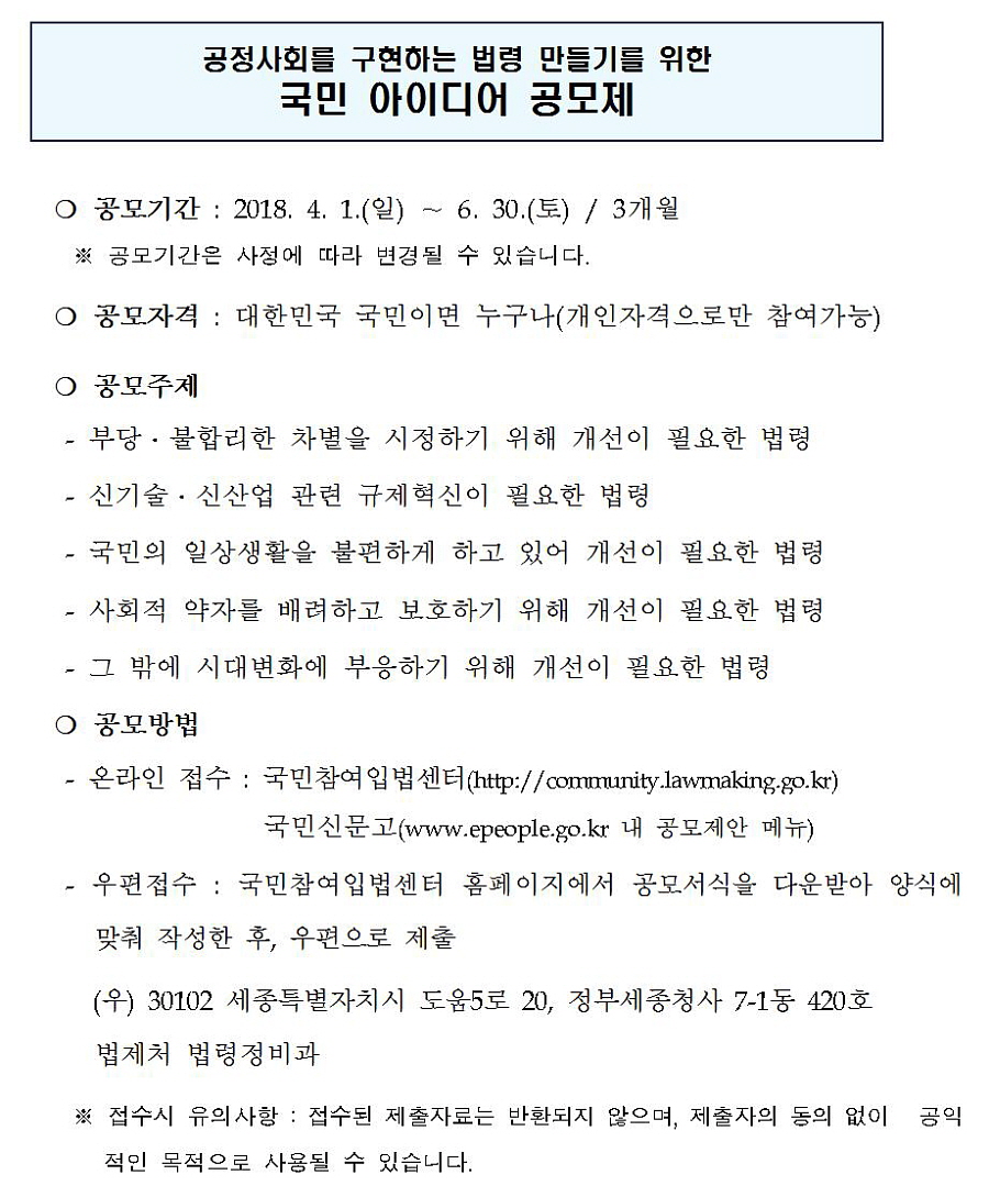 공정사회를 구현하는 법령 만들기를 위한 <국민 아이디어 공모제> 안내