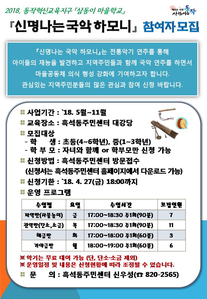 "신명나는 국악하모니" 참여자 모집