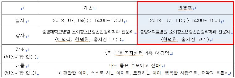 '나도 좋은 부모이고 싶다!' 공개강좌 변경사항 안내