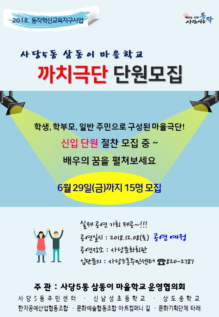 사당5동 삼동이 마을학교 "까치극단" 단원모집