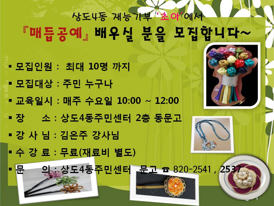 상도4동 재능기부 '초아'에서 매듭공예 배울실 분을 모집합니다~~