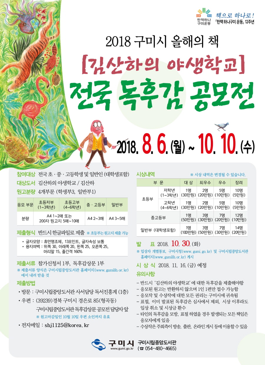 2018 구미시 올해의 책 전국 독후감 공모전 안내