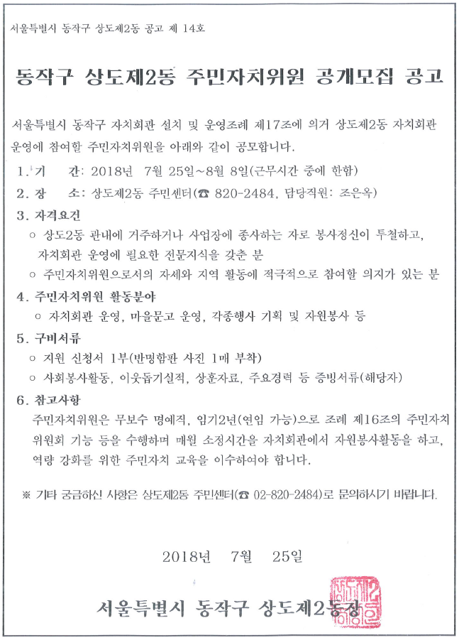 상도제2동 주민자치위원 공개모집 공고