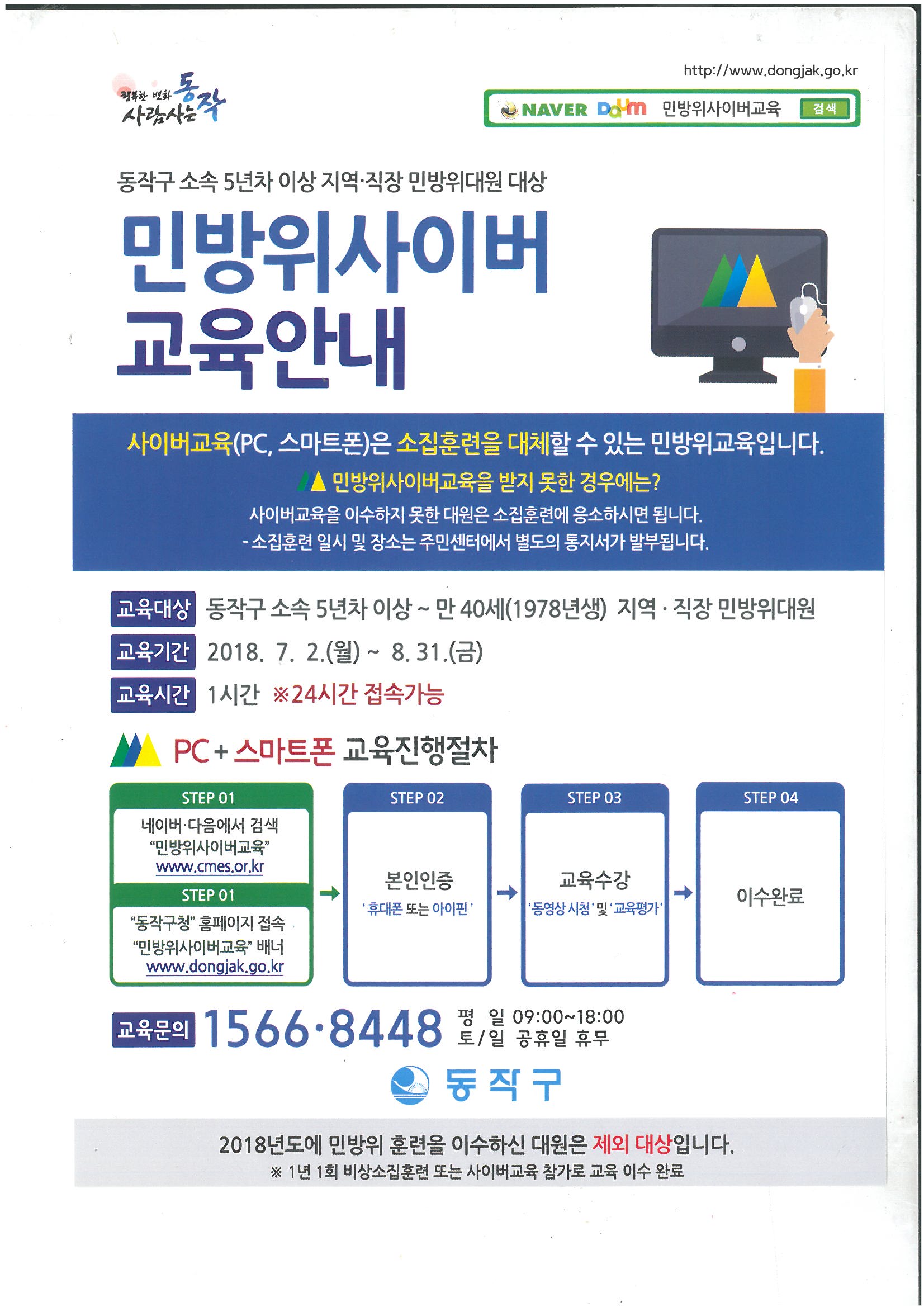 민방위 5년차 이상 대원께서는 사이버교육 서둘러주세요.