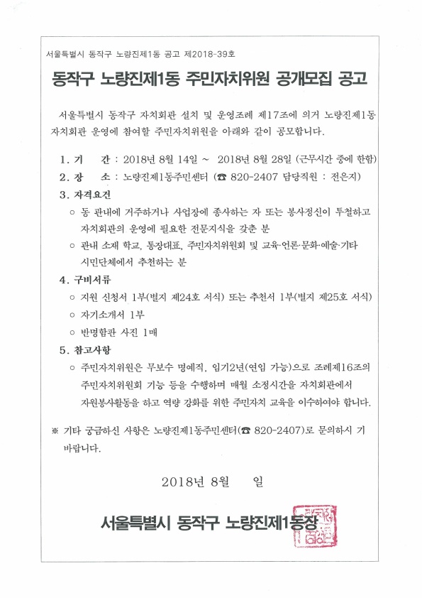노량진1동 주민자치위원 공개모집 공고