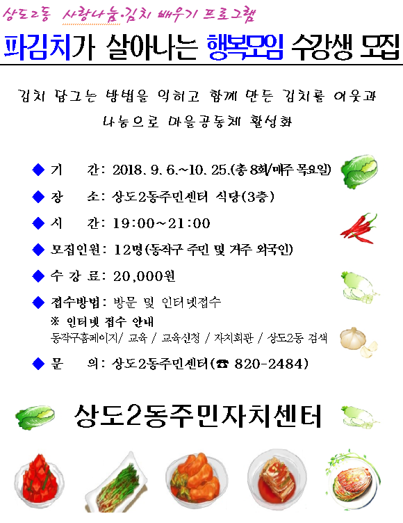 상도2동 사랑나눔김치배우기 프로그램 수강생 모집