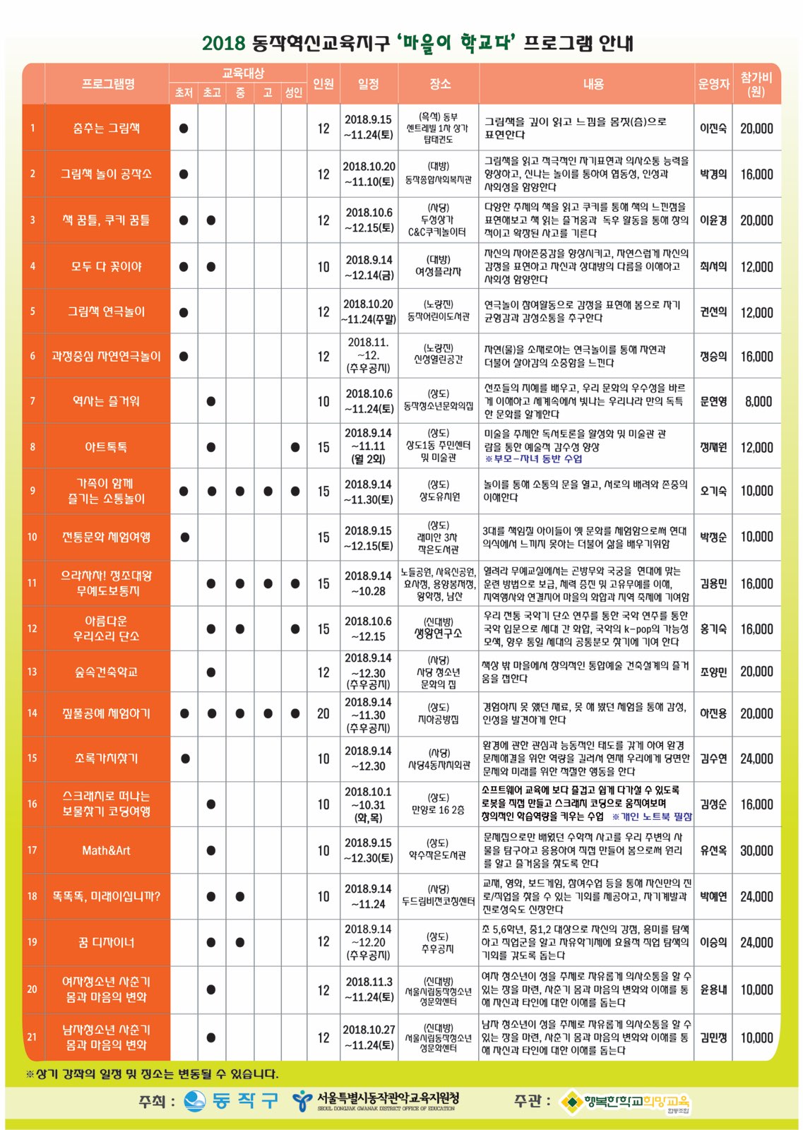 동작구 혁신교육지구 [마을이 학교다] 수강 신청 안내