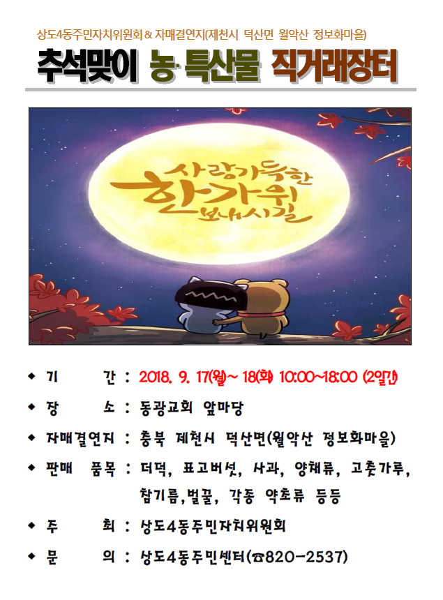 상도4동 추석맞이 농특산물 직거래 장터 운영 홍보