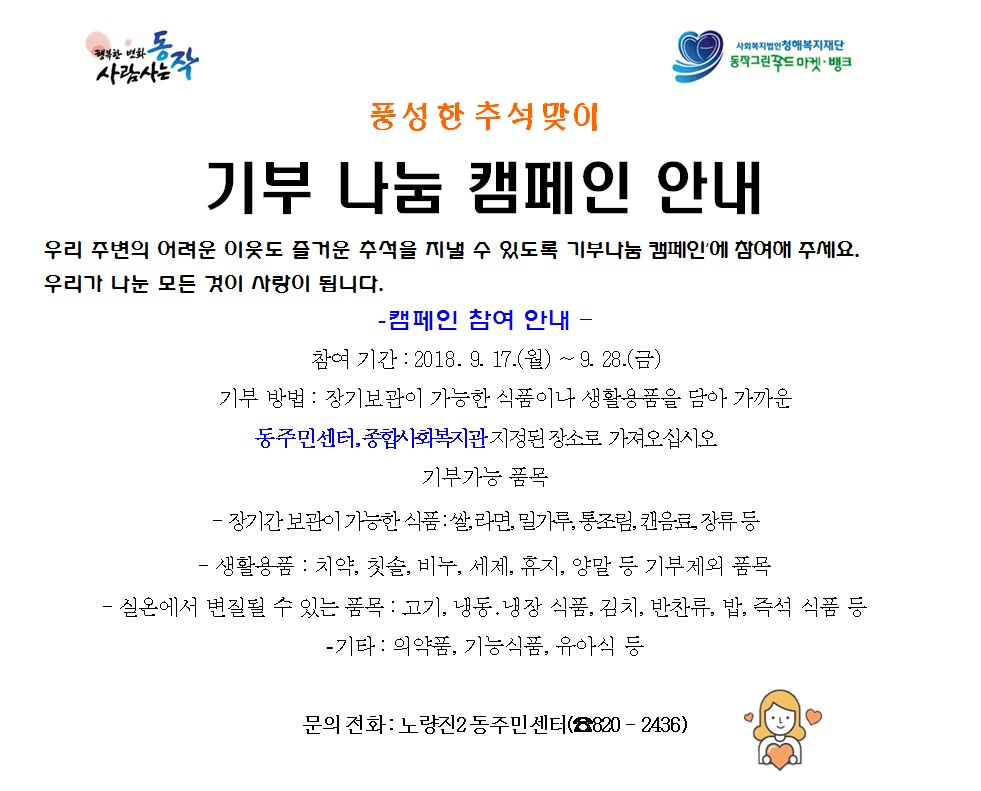 풍성한 추석맞이 기부나눔 캠페인 안내