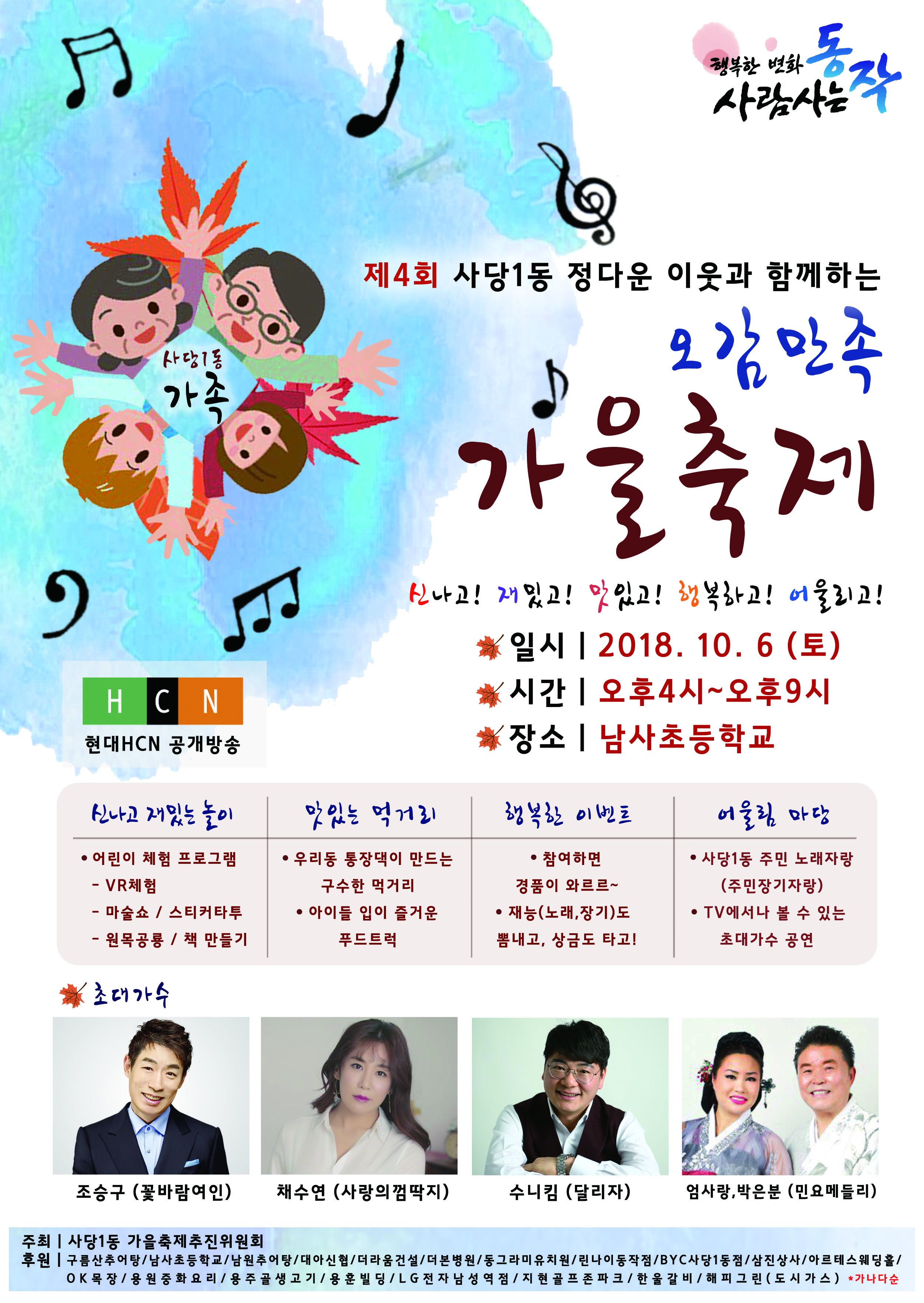 '제4회 사당1동 오감만족 가을축제' 개최 안내