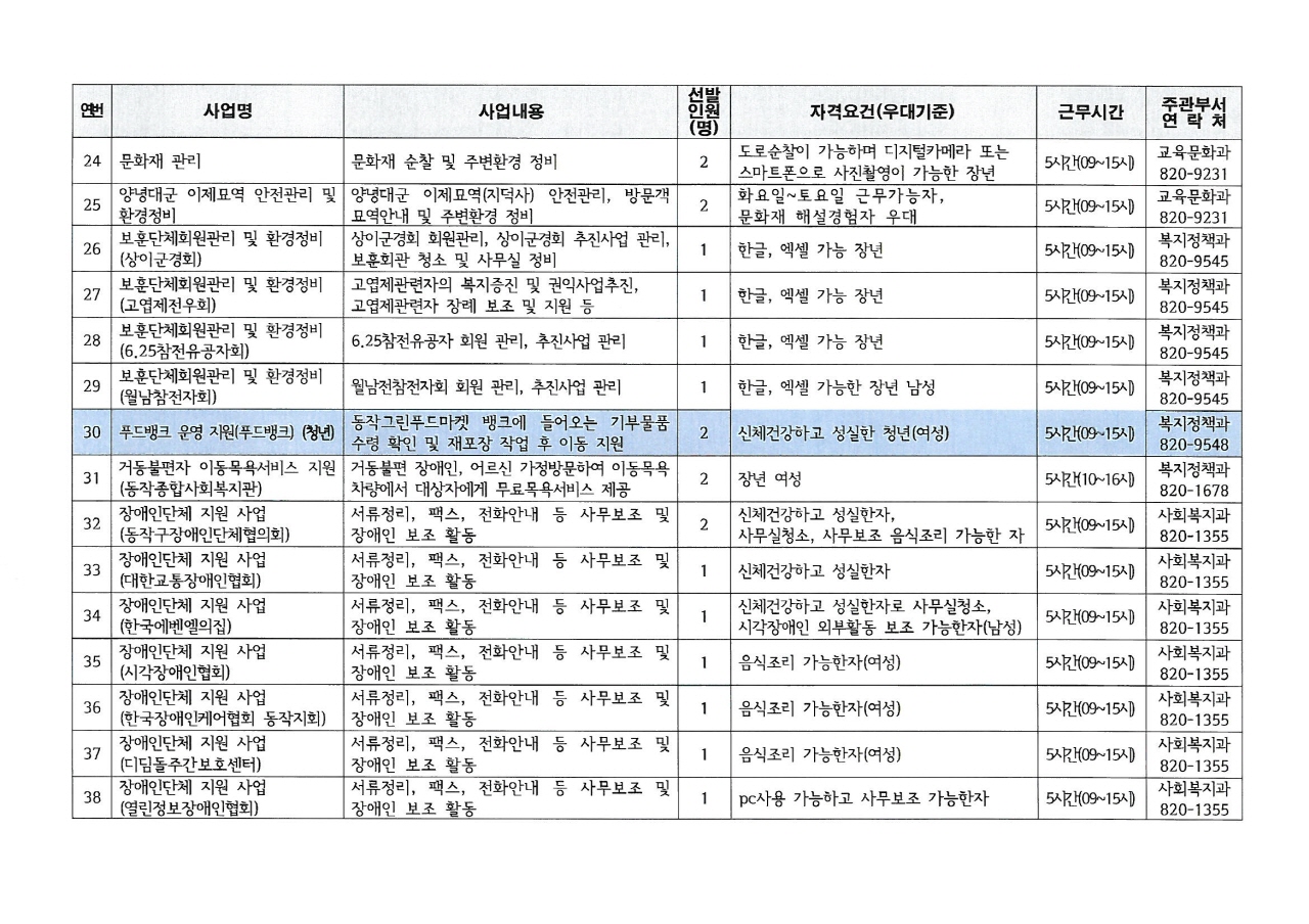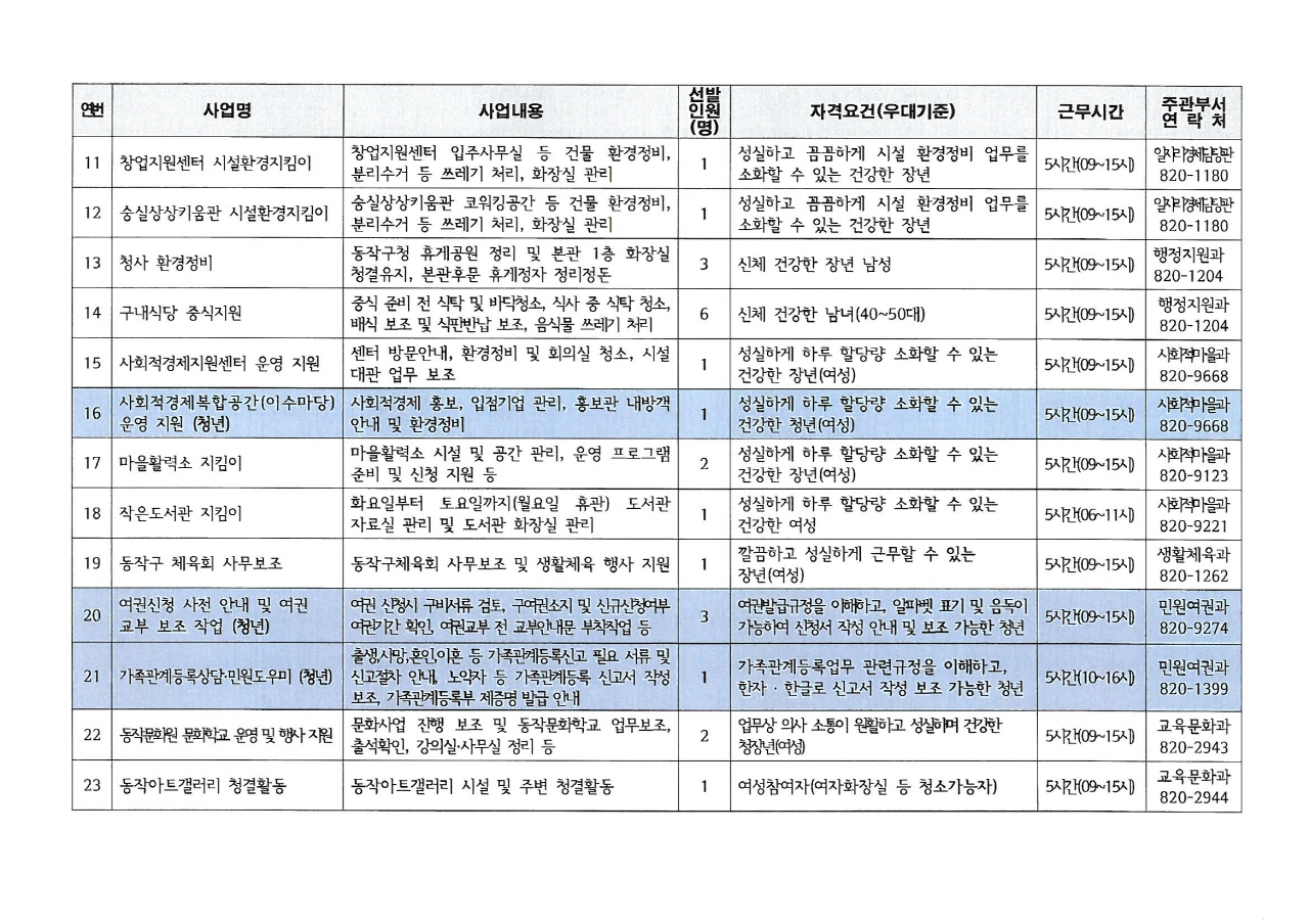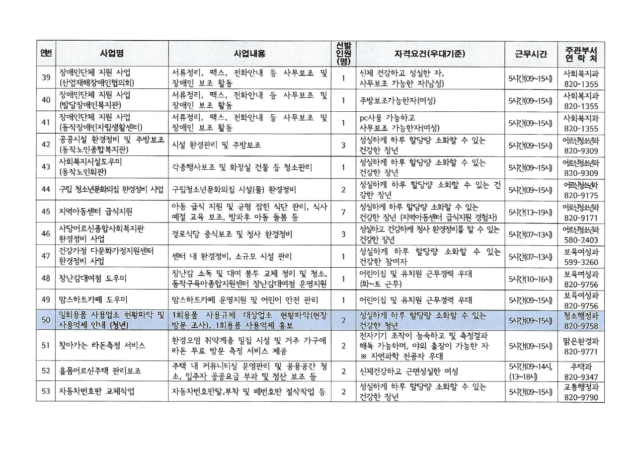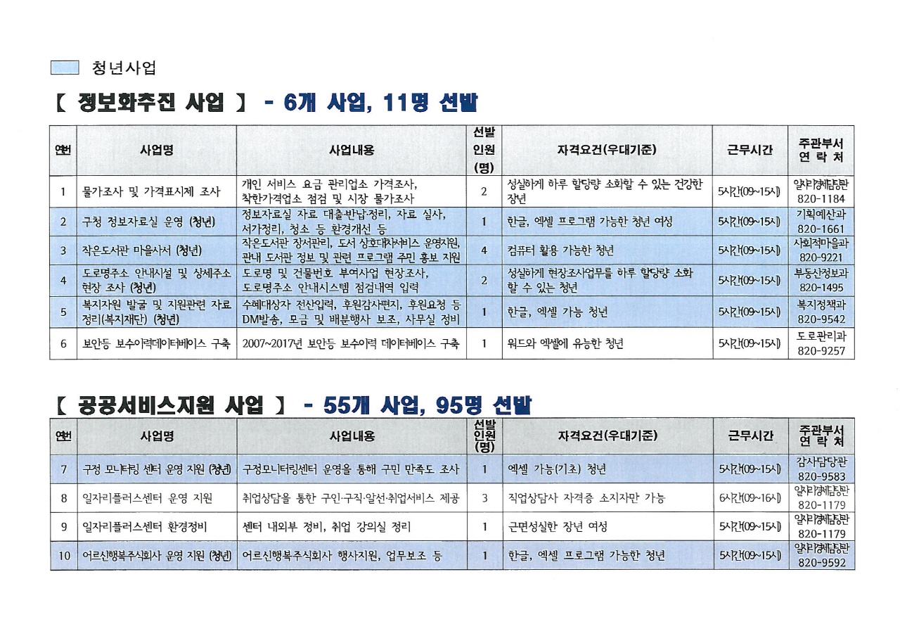 2019년 상반기 공공근로사업 참여자 모집 공고 및 사업 목록 안내(11.12.~11.23.)