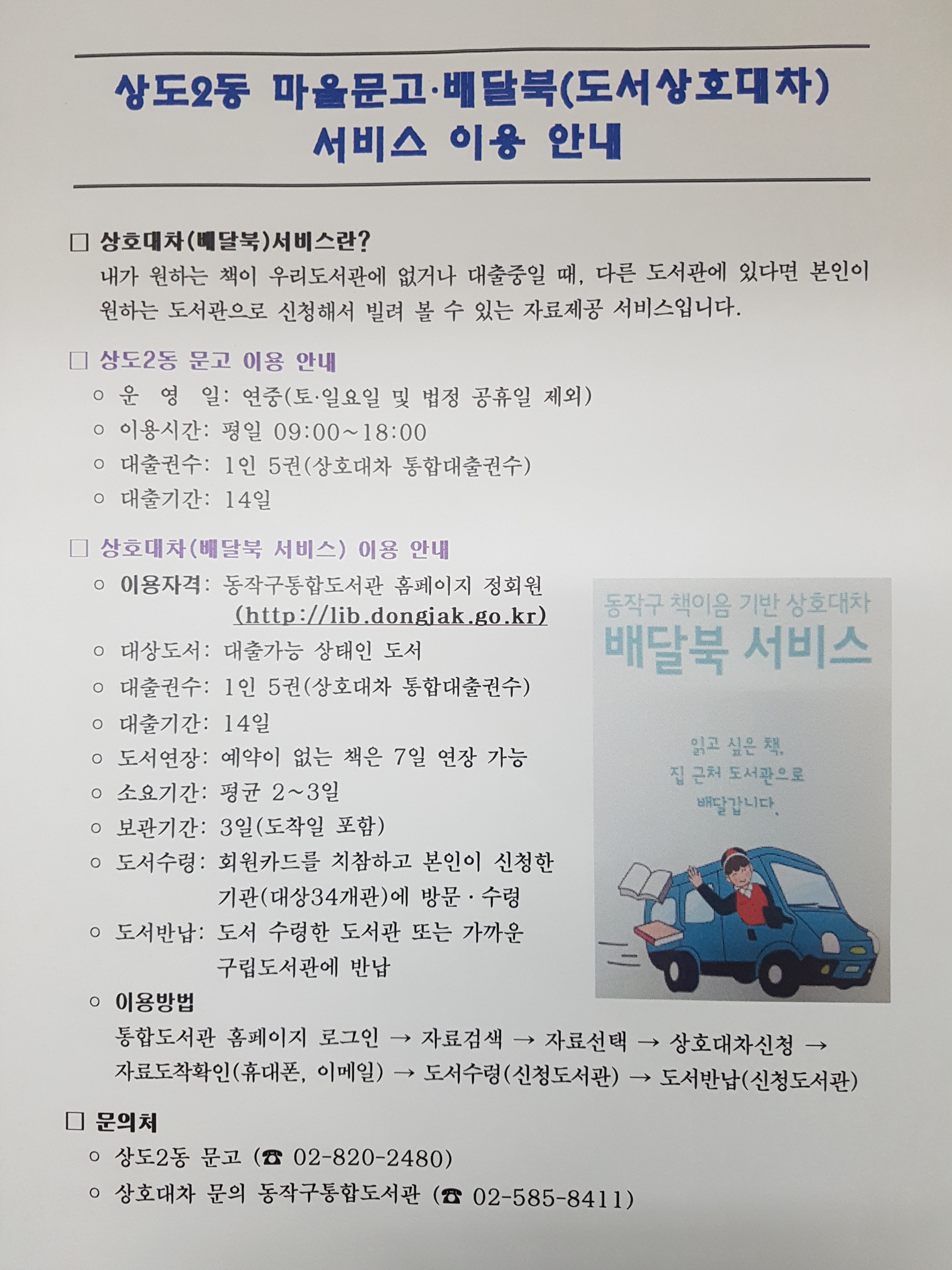 상도2동 마을문고·배달북(상호대차) 서비스 이용 안내