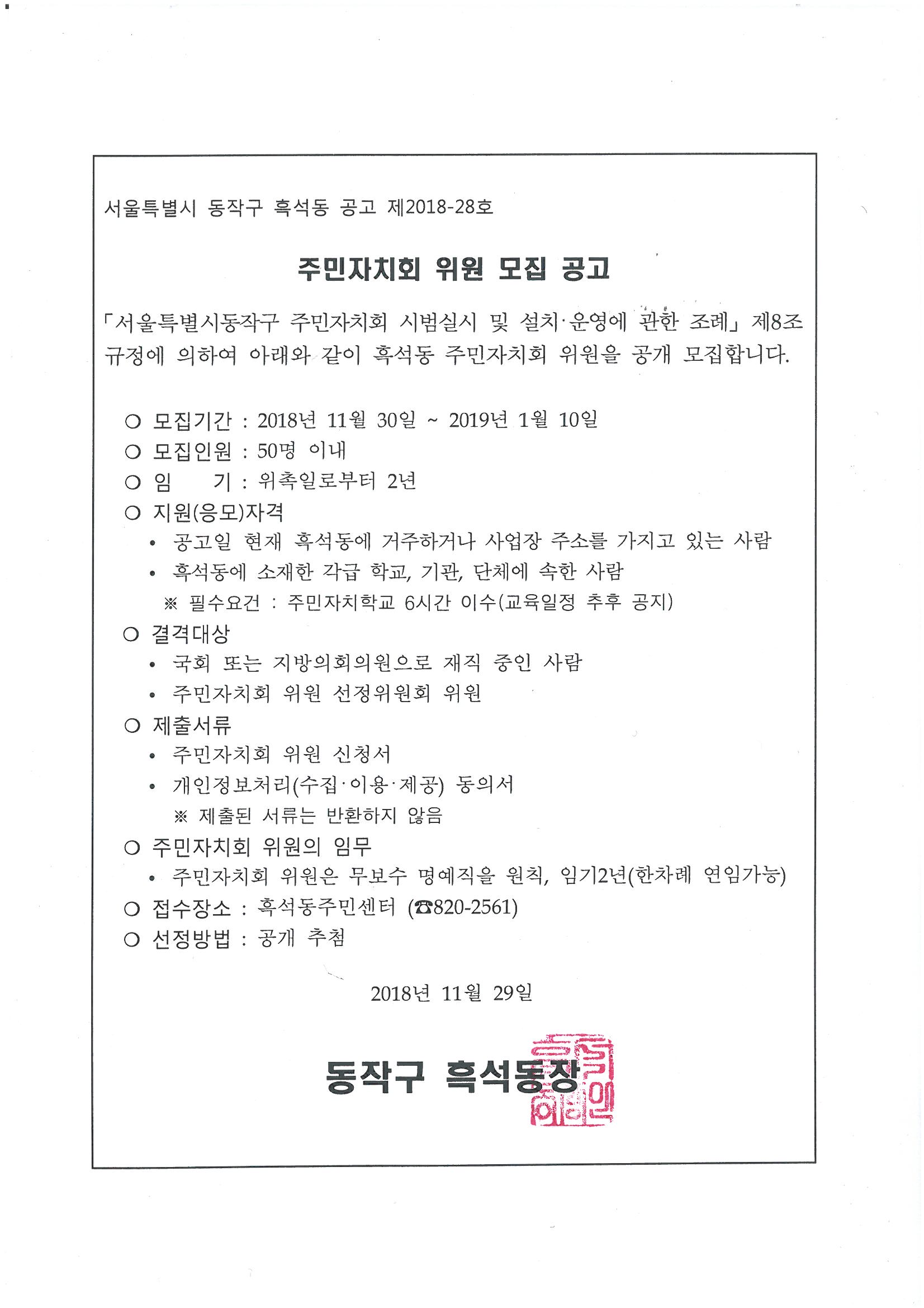 흑석동 주민자치회 위원 모집 공고