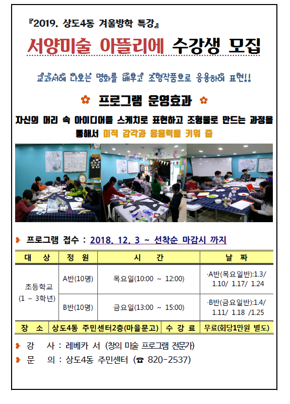 상도4동 2019년 1기 겨울방학 특강 프로그램 접수 안내