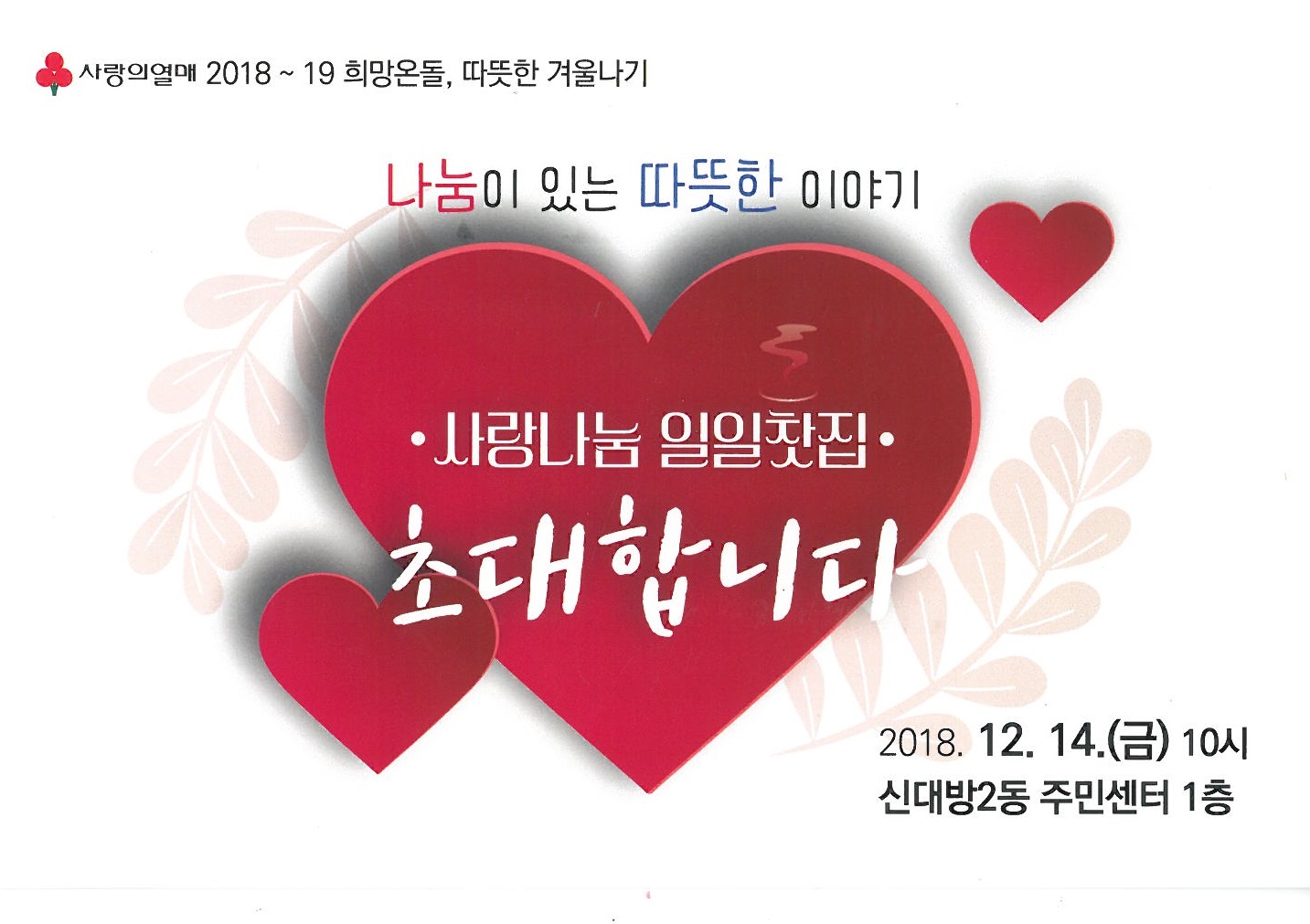 신대방2동 사랑나눔 일일찻집에 주민여러분을 초대합니다