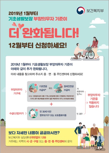 2019년 1월부터 기초생활보장 부양의무자 기준이 더 완화됩니다!!